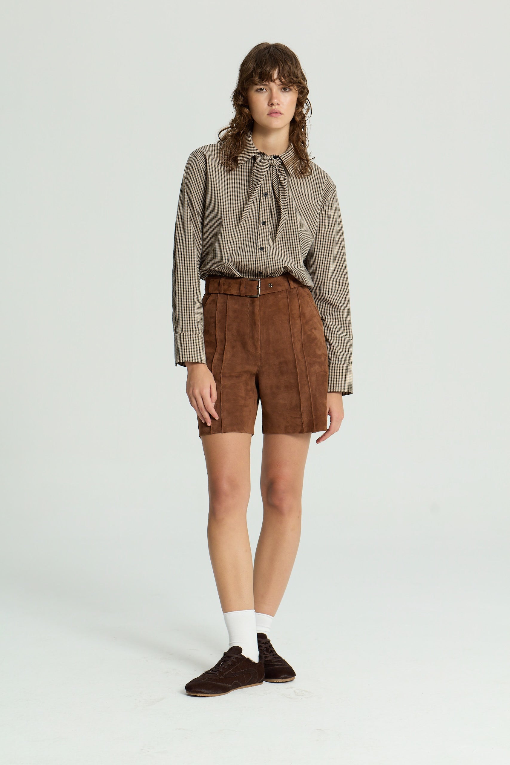 The Tanora Suede Shorts reinterpret classic tailoring through a sculptural lens.